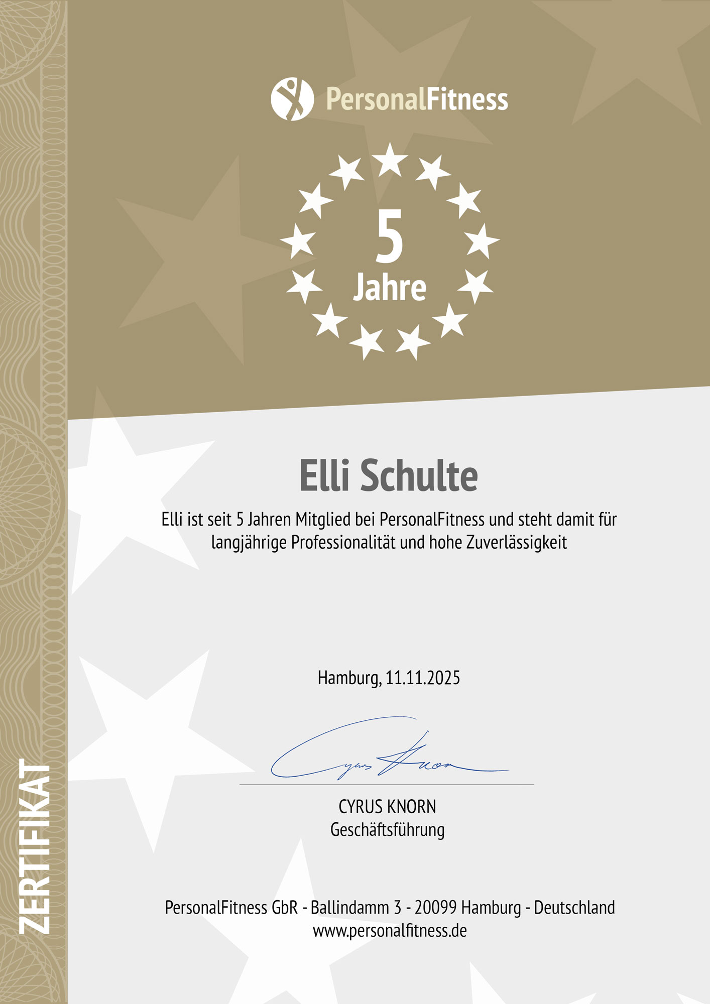 - Sturzpräventionstrainerin (Health & Fitness Academy, 2019)